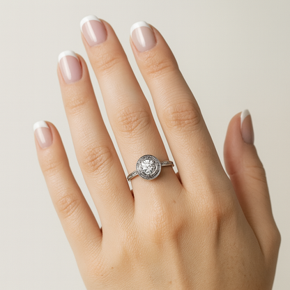 - 💎 Zircone centrale rotondo con contorno pavé scintillante