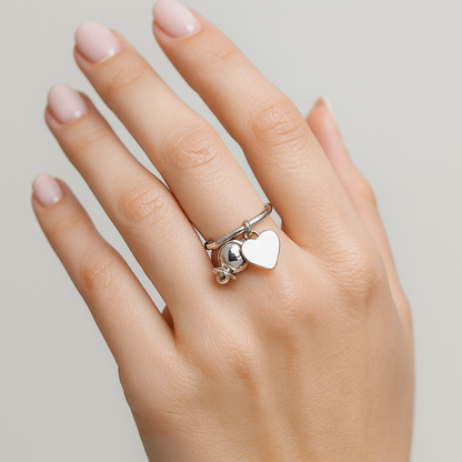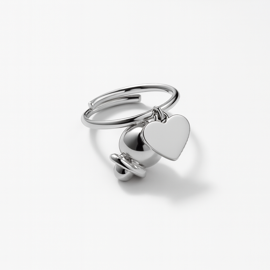 Il Heart & Bell è l’anello con doppio charm che gioca con movimento e luce, perfetto per chi ama distinguersi con dettagli chic.