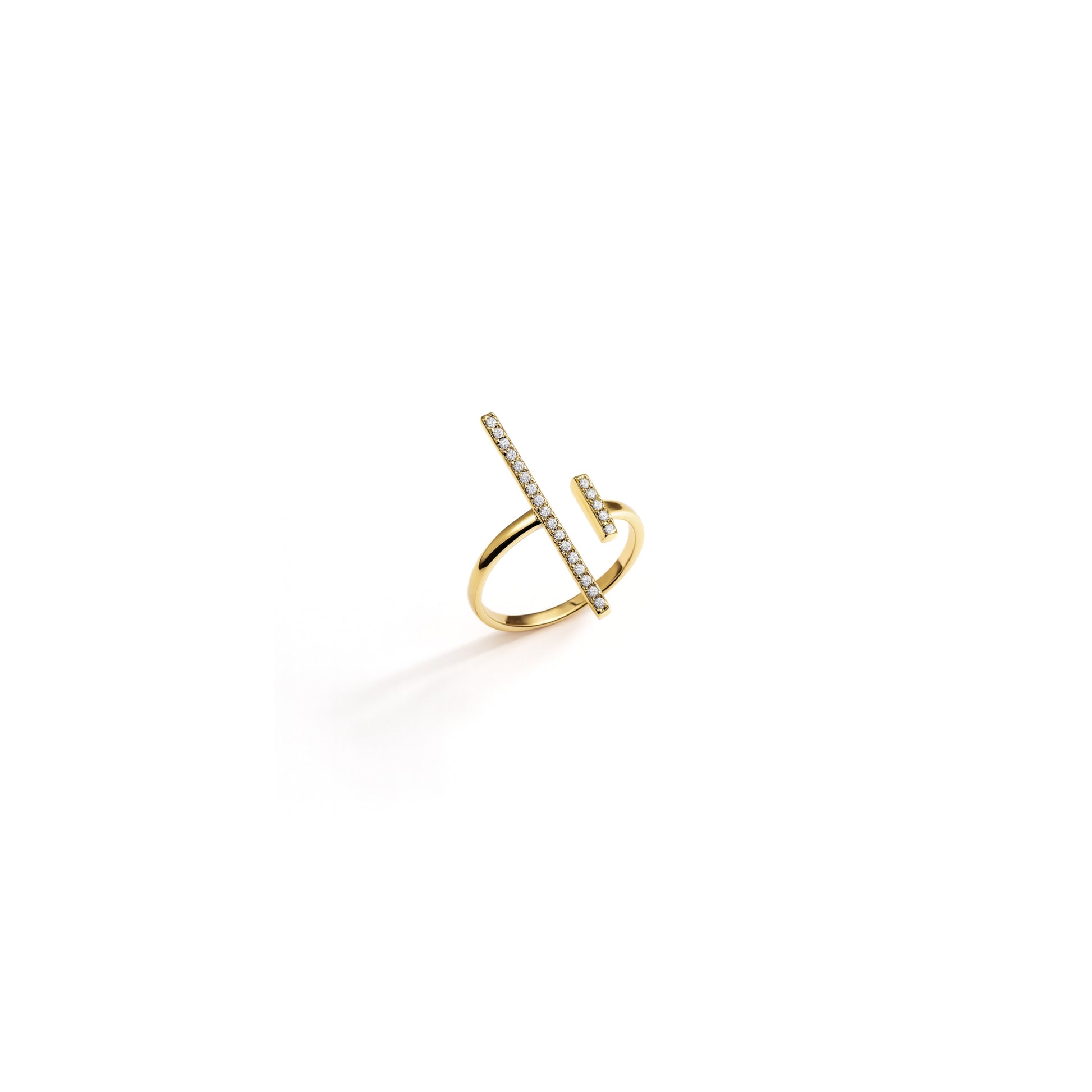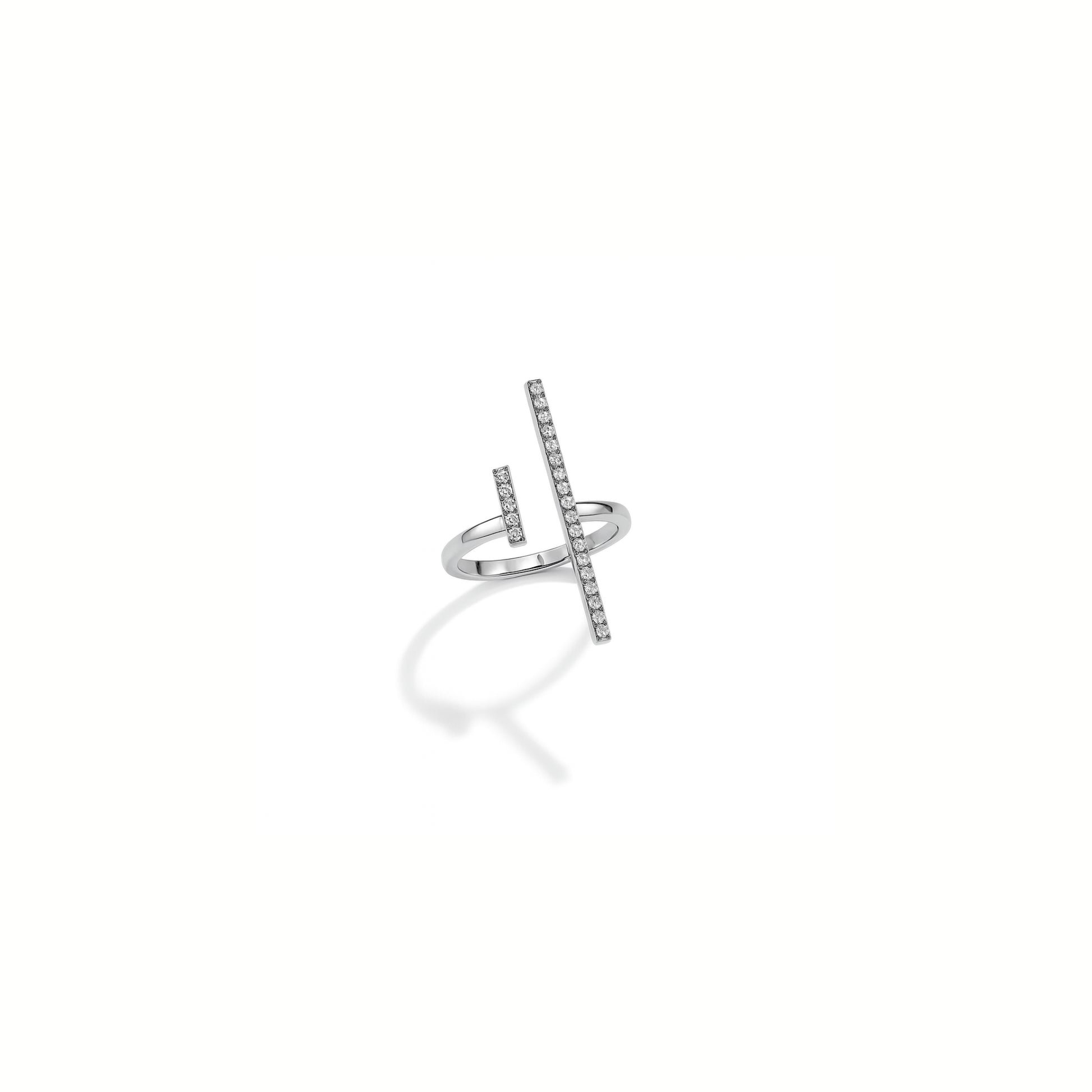Minimalismo con carattere. Linea è l’anello regolabile in acciaio inox con zirconi incastonati che disegnano due linee luminose e decise.
