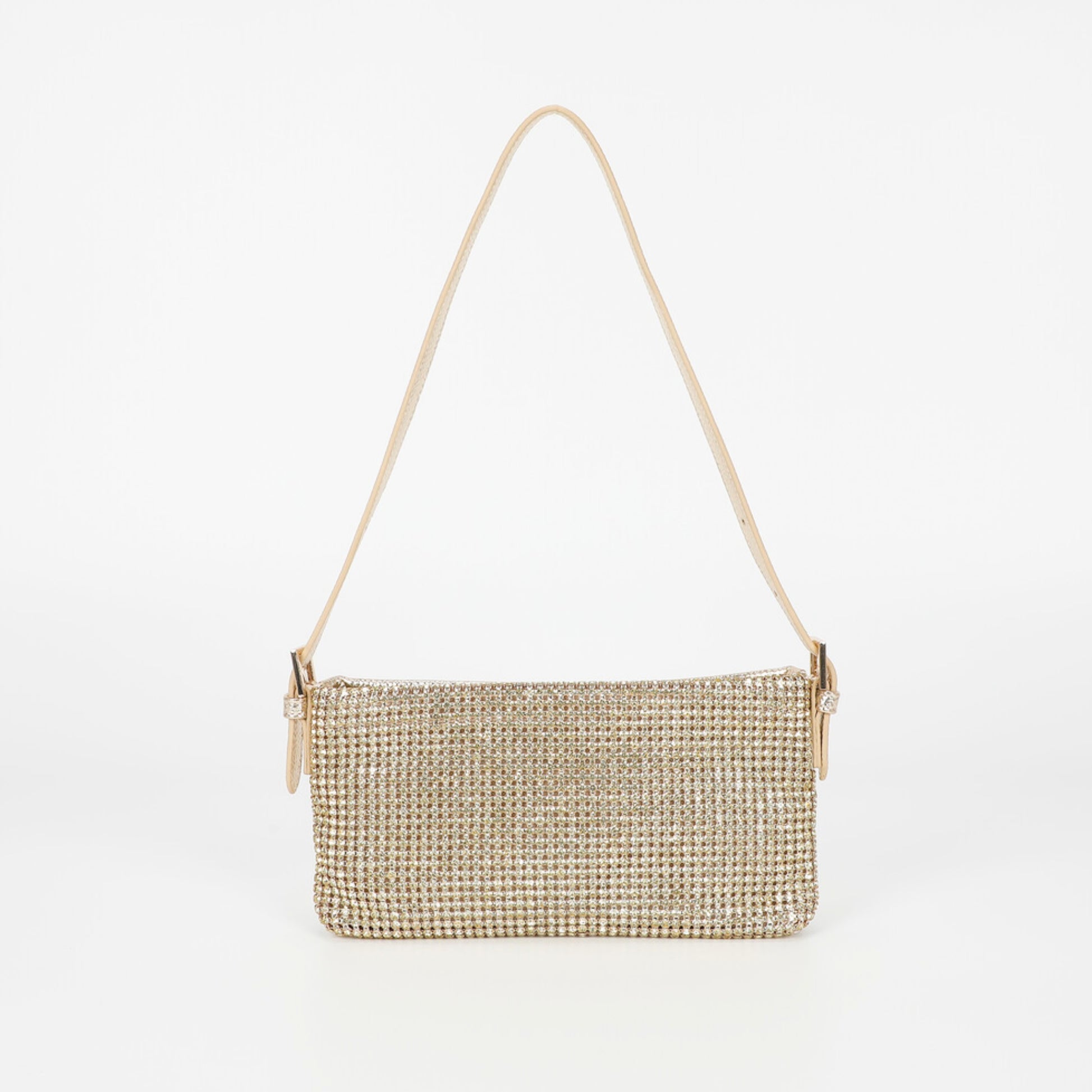 Un lato in pelle liscia per un’eleganza minimal, l’altro ricoperto di strass per un tocco di luce irresistibile.