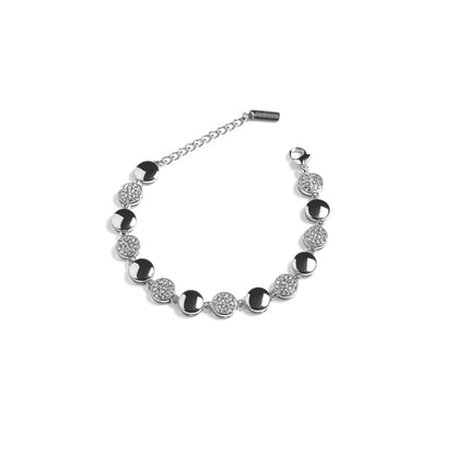 Circle Moon Pavé è un bracciale che cattura la luce in ogni movimento: cerchi argentati e pavé scintillanti che creano un ritmo elegante e contemporaneo.