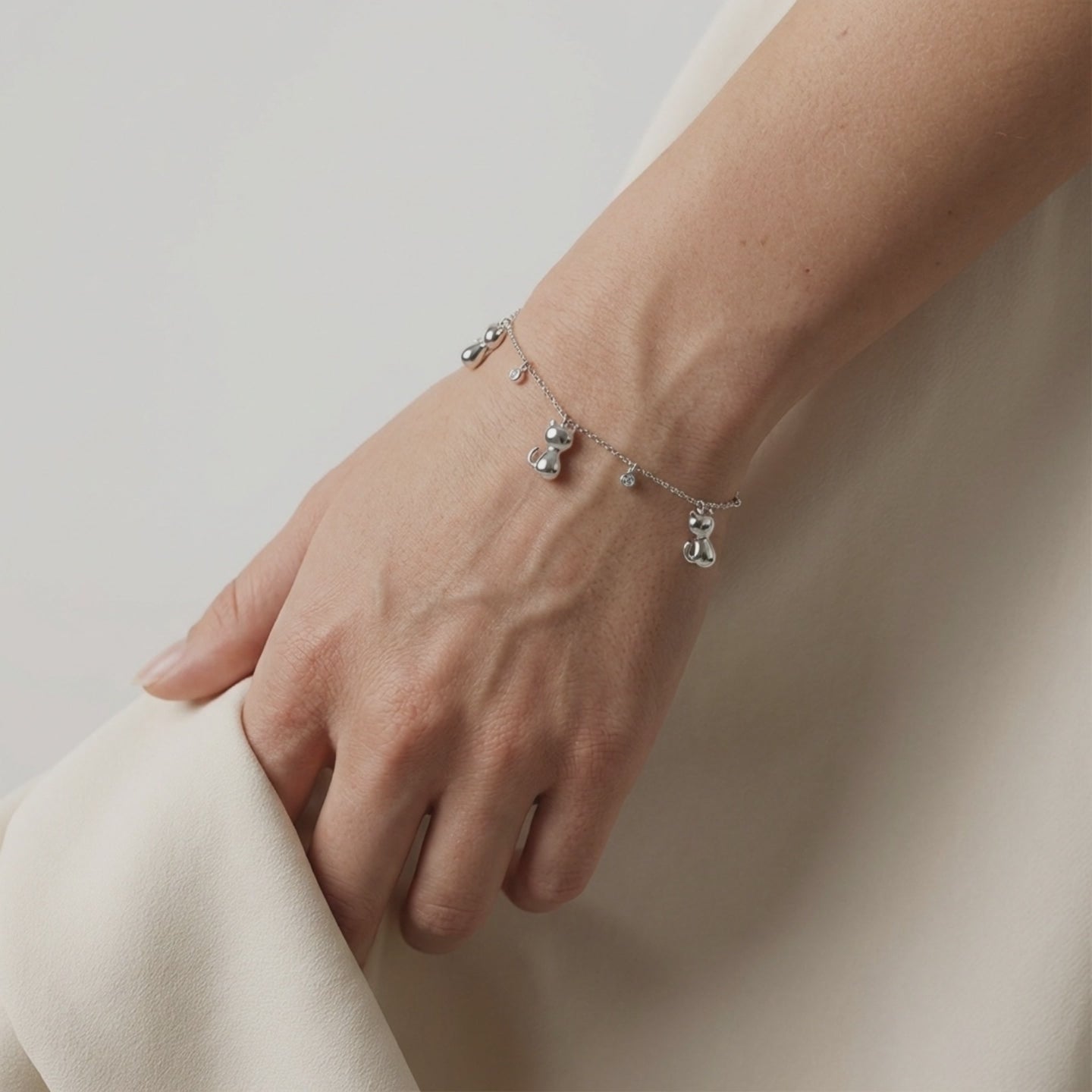 - Finitura: Silver con charm gattini lucidi