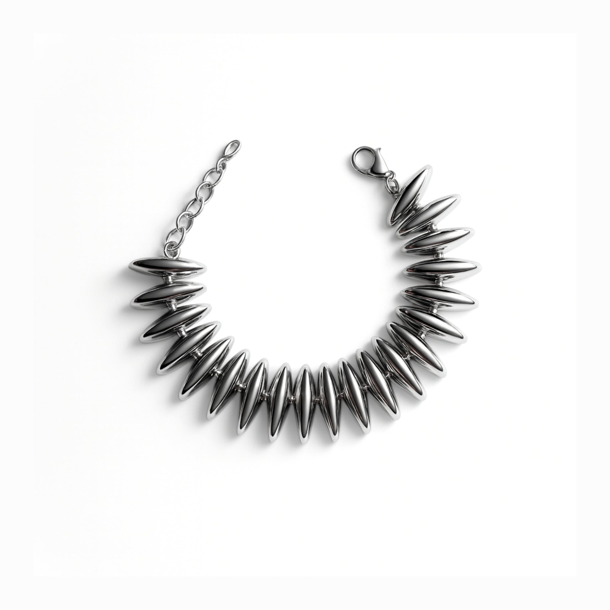 Audace, affilato, unico. Spike è il bracciale in acciaio inox che porta l’estetica contemporanea a un livello superiore. Con le sue forme scultoree a punta, è pensato per chi ama distinguersi con dettagli forti e decisi. Perfetto come gioiello statement, ideale per look editoriali e urban-luxury.