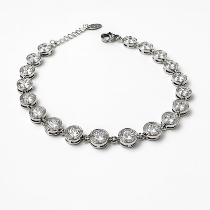 Un design che cattura la luce ad ogni movimento. Il bracciale Swaré nasce dall’incontro tra acciaio inox lucido e una sequenza di zirconi che ricordano i modelli più amati in stile SW. Eleganza senza tempo, pensata per ogni occasione.