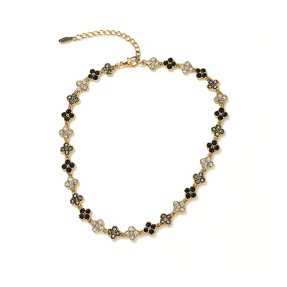 Noir Bloom Petal è la collana choker in acciaio inox dorato con piccoli motivi floreali in cristalli neri e bianchi.