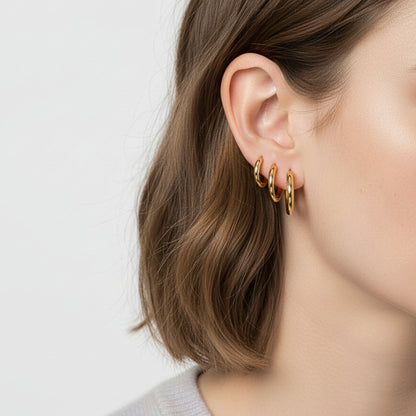 Il set include 3 paia di orecchini (6pz) in acciaio inox (small, medium, large) pensati per accompagnare ogni momento della giornata.