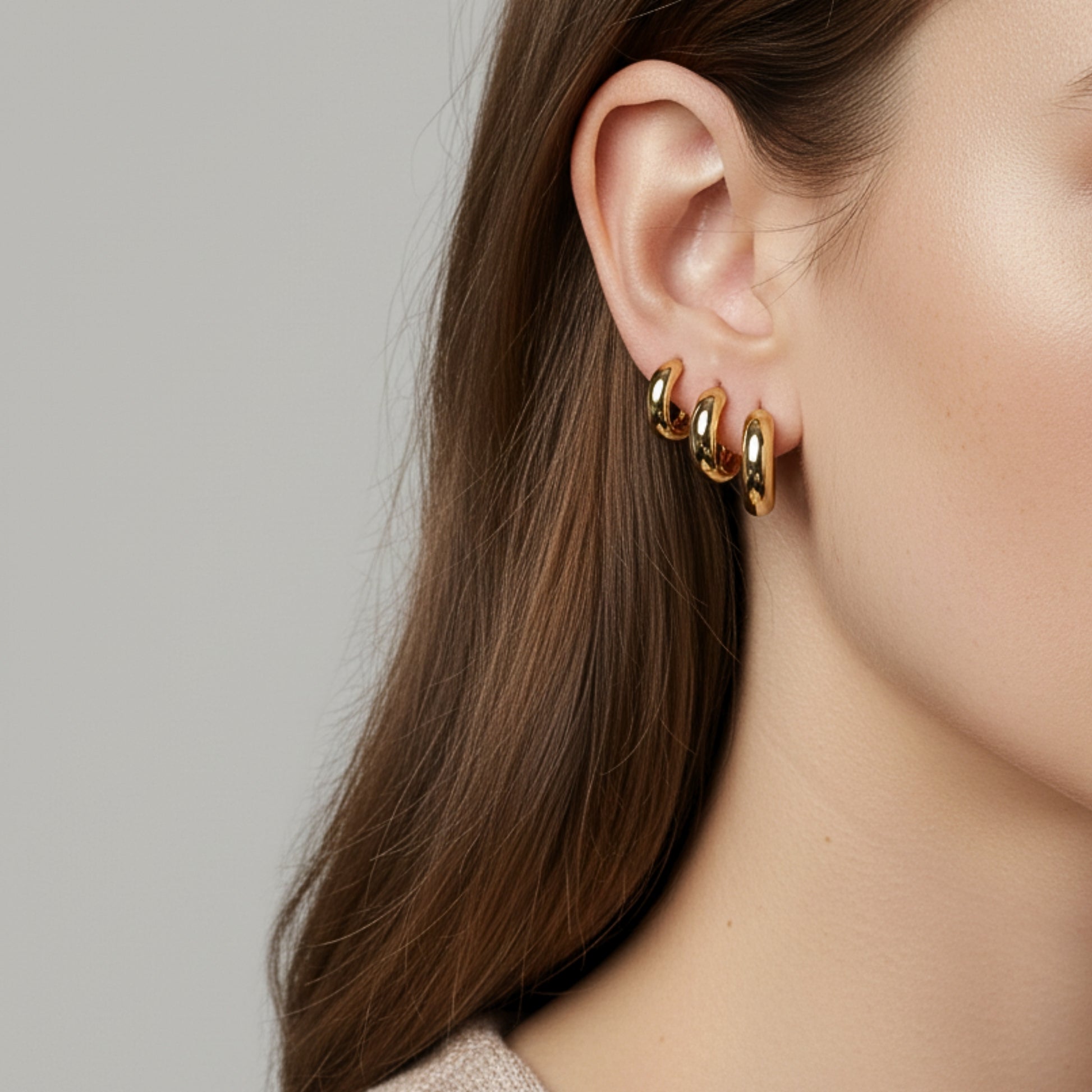 Un set composto da 3 paia di orecchini a cerchio in acciaio inox lucido, perfetti per creare look stacked e giocare con le proporzioni.