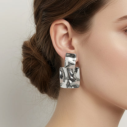 Scultorei, intensi e riflessivi. Gli Orecchini Battuto giocano con le superfici irregolari e la luce, creando un effetto quasi liquido sul metallo. Perfetti per chi cerca un accessorio forte, moderno e inaspettato.