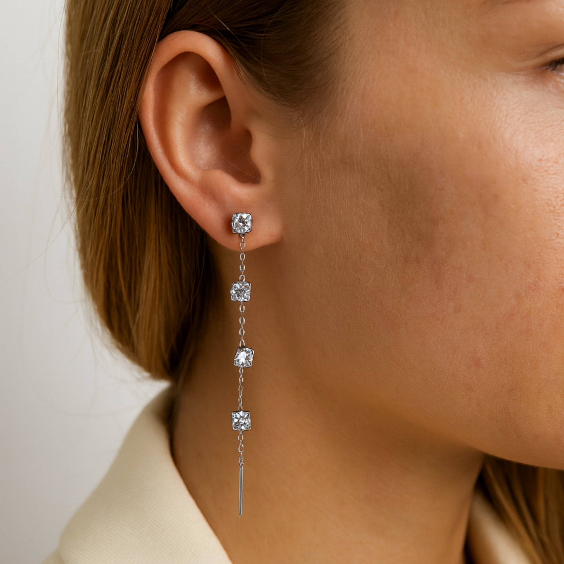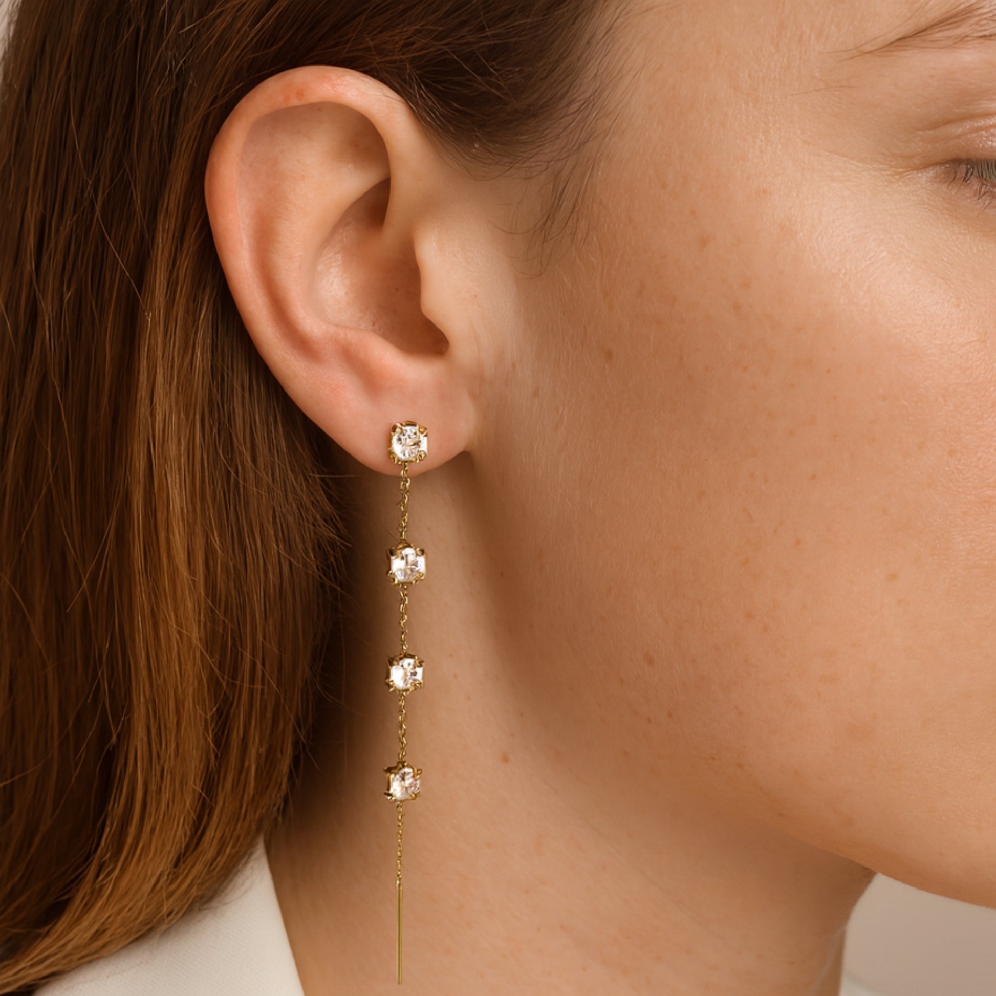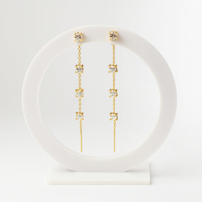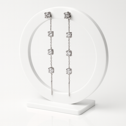 Un design che scivola come l’acqua. Gli Orecchini Cascata Iguazú uniscono la delicatezza della catena sottile con la luminosità dei brillanti, creando un effetto elegante e fluido come una cascata di luce.