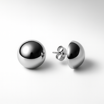 I Button Globe sono orecchini a sfera in acciaio inox con finitura lucida effetto specchio. La forma pura e senza tempo li rende un vero classico contemporaneo: versatili, essenziali, capaci di valorizzare ogni look con un tocco deciso.