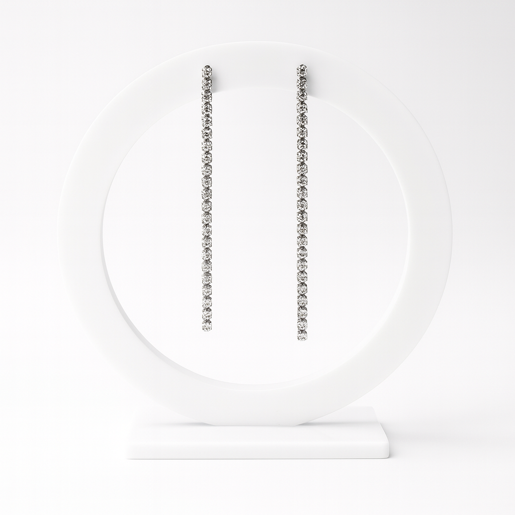 I Tennis Line sono orecchini pendenti sottili e lineari, composti da una sequenza continua di brillanti che catturano e riflettono la luce a ogni movimento. Un design minimal ma scenografico, perfetto per chi ama distinguersi con eleganza.