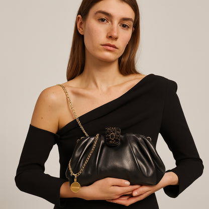 Il Velour Noir è la clutch che trasforma qualsiasi uscita in un momento editoriale: discreta ma indimenticabile.